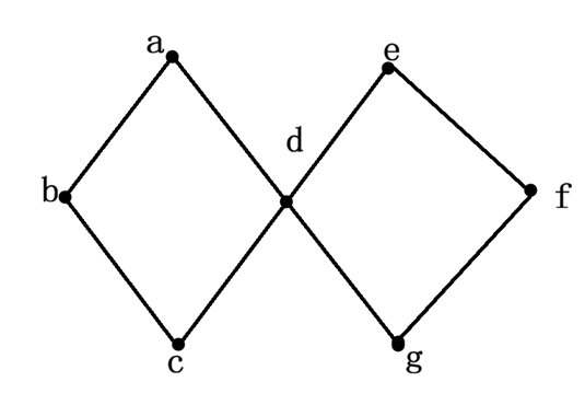 以a为起点,对下边的无向图进行深度优先遍历,则b,c,d,e,f,g六个点中有可能作为最后一个遍历到的点的个数为