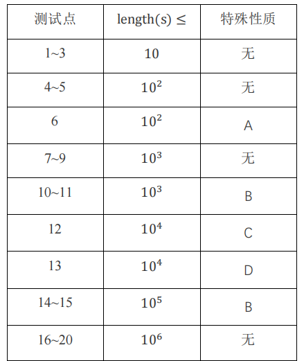 对于所有测试数据保证:$1≤length(s)≤10^6,s_i∈[a-z],1≤ l≤r≤length(s)$