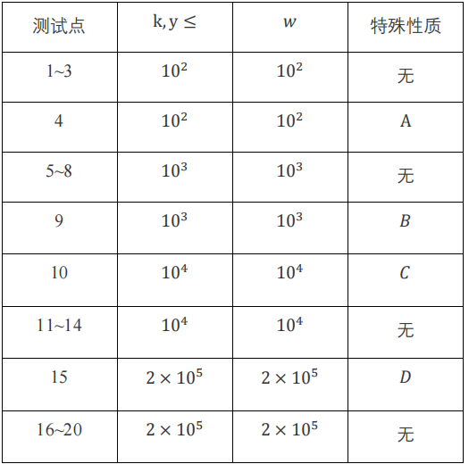 对于所有测试数据有:$1≤n≤2×10^5,n-1≤m≤2×10^5,1≤w<10^9$。保证图中没有重边和自环。保证所有点之间互相连通。除特殊性质B外,均保证原图的最小生成树唯一。