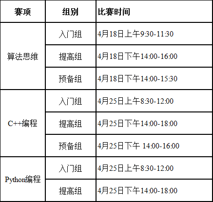 C++编程、算法思维、Python编程决赛均为线下赛。C++编程、Python编程为上机操作编程,算法思维为传统纸质试卷答题。比赛地点另行通知。